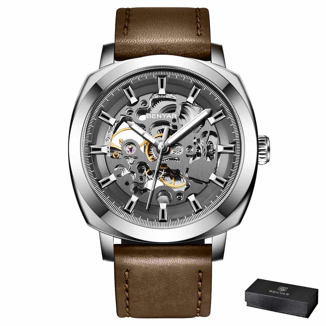 Moška ročna ura Benyar Mechanical Skeleton Silver Brown