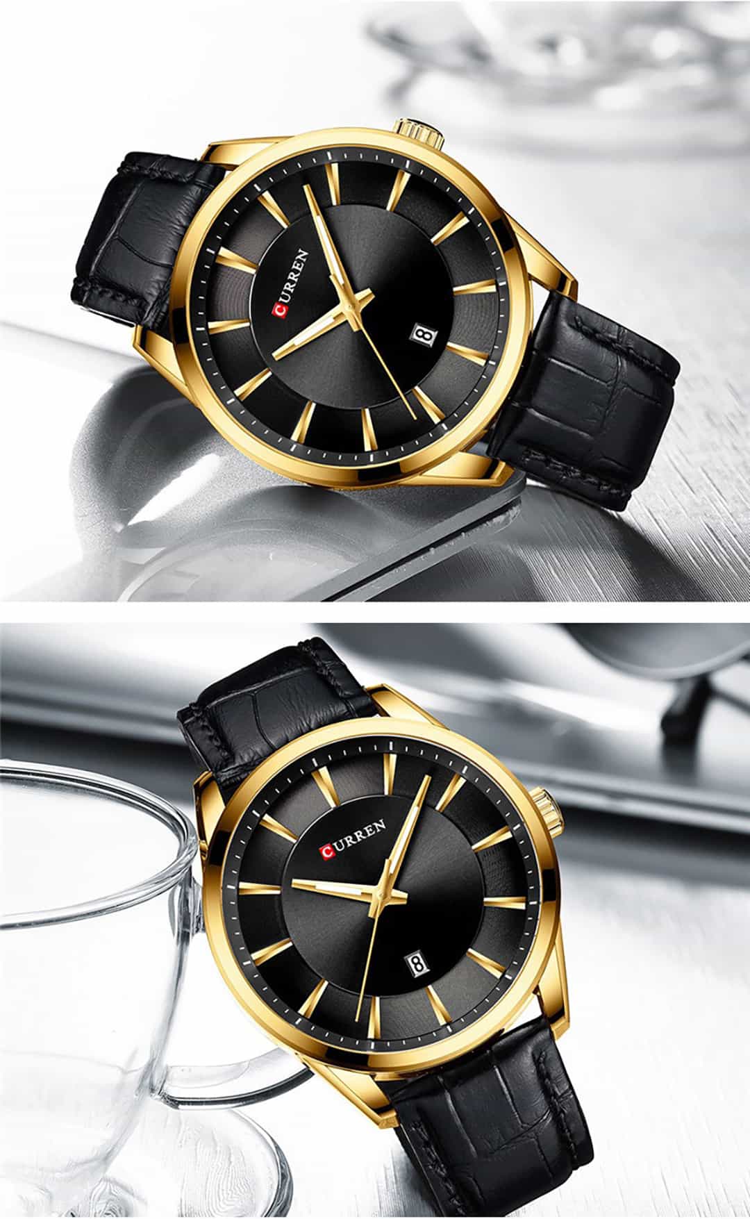 Moška ročna ura Curren Leisure Gold združuje klasično eleganco in sodoben dizajn. S svojo prefinjeno zlato barvo in črno številčnico izžareva prestiž in samozavest, zaradi česar je popolna izbira za vsako priložnost. Usnjen črn pašček dopolnjuje luksuzen videz ter zagotavlja udobno nošenje skozi ves dan.