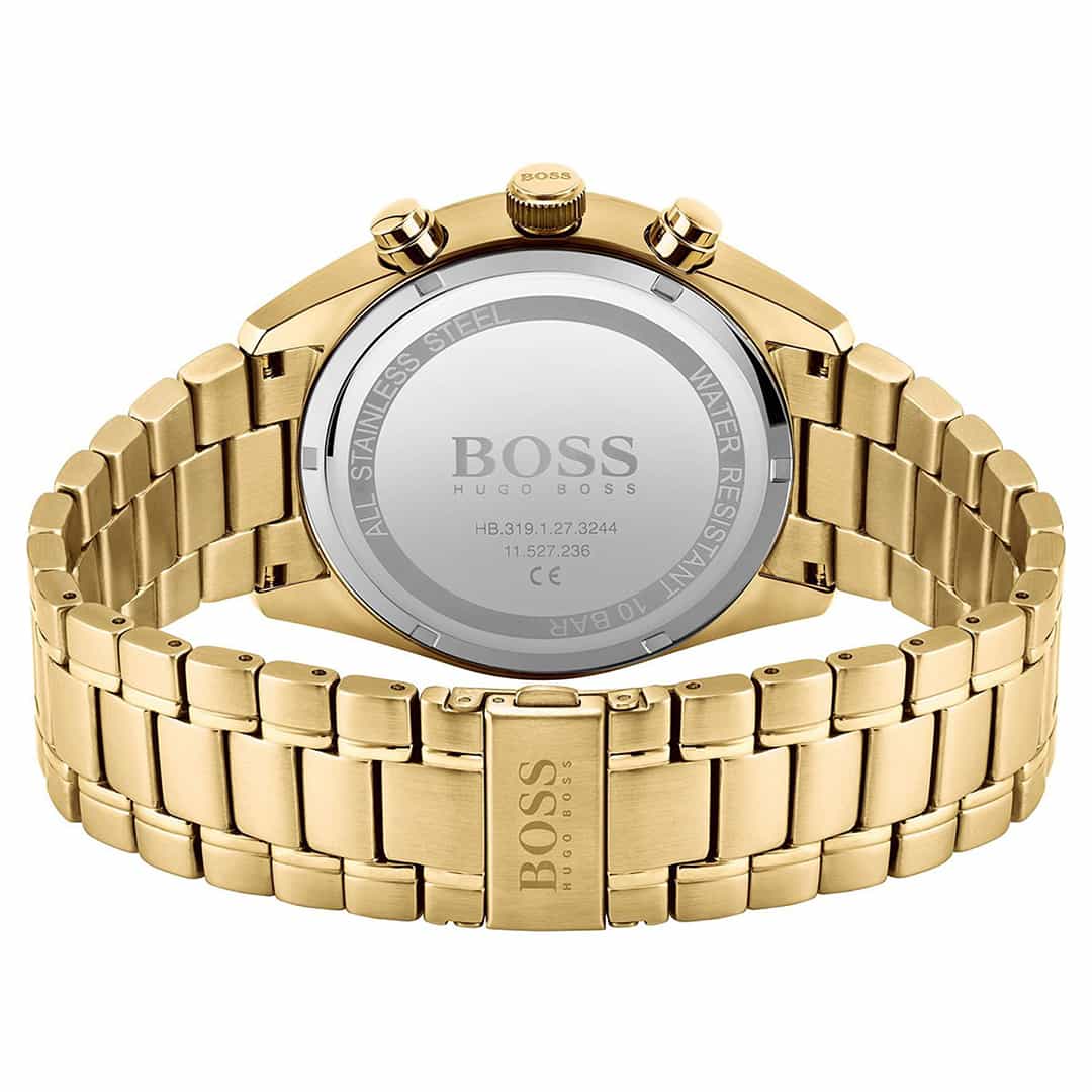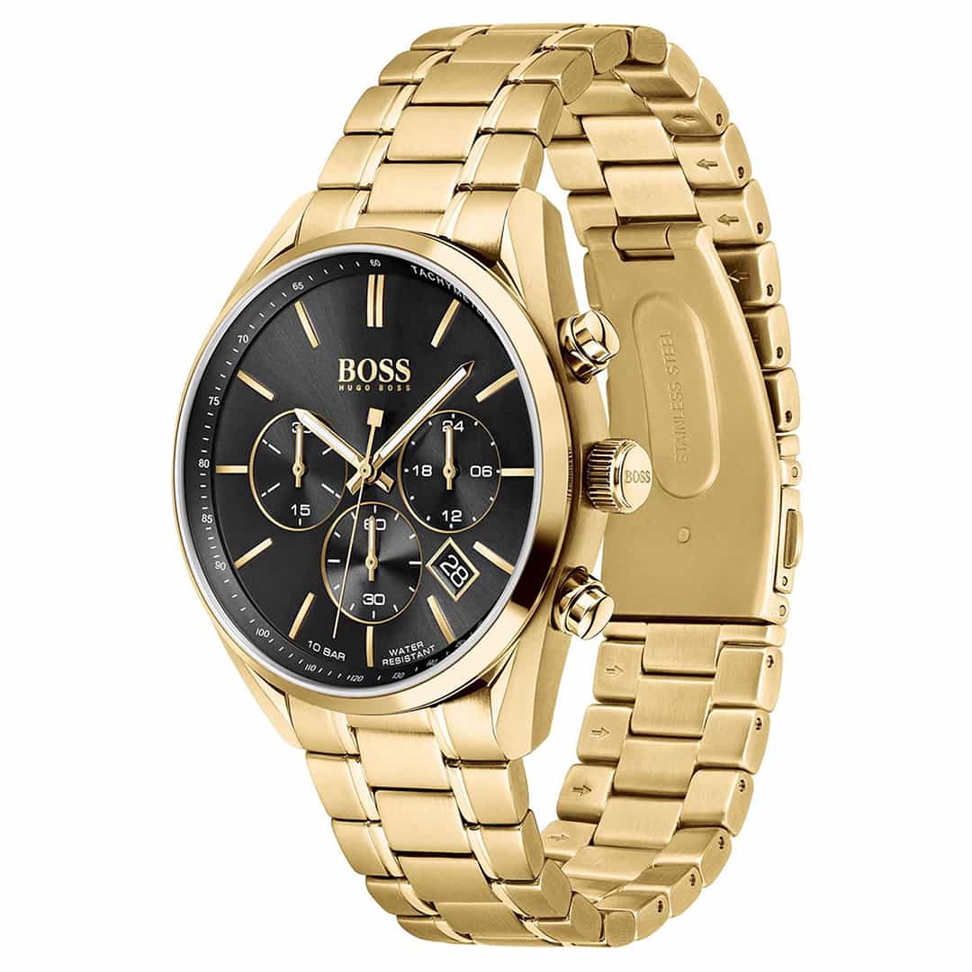 Moška ročna ura Hugo Boss Champion 1513848 združuje športno zmogljivost in razkošen slog v prestižni zlato‑črni barvni kombinaciji. Z zlatim ohišjem iz nerjavečega jekla, globoko črno številčnico ter popolnoma zlatim kovinskim paščkom ta model izžareva moč, eleganco in samozavest. Kronograf, prikaz datuma in vodoodpornost do 10 ATM zagotavljajo popolno funkcionalnost za vsakodnevno uporabo.