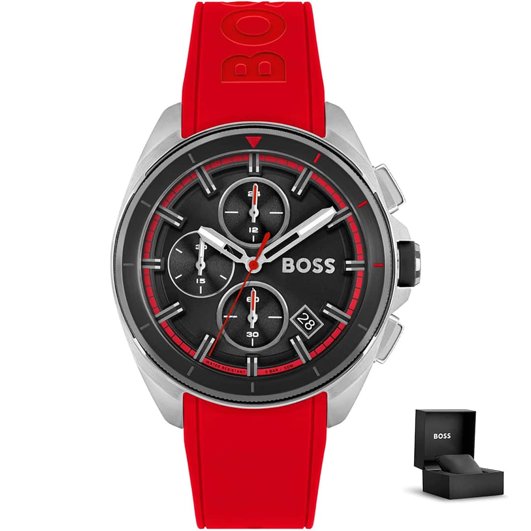 Rdeča barva paščka ure je prelomna s svojim drznim tonom, ki zajame esenco urbane energije. Velik napis BOSS na pasu zagotavlja prepoznavnost blagovne znamke. Ta izkazuje zavezanost k izjemnosti, ki jo Hugo Boss zagotavlja v vsakem kosu. Ura Hugo Boss Volane 1513959 je ustvarjena za moškega, ki se ne boji izstopati.