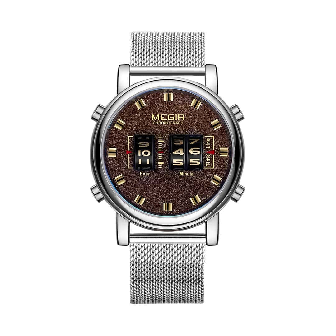 Moška ura Megir Military je modna ura, kot je še niste videli. Ima analognim prikazovalnikom časa, ki ne uporablja kazalcev. Ta posebni prikaz časa poganja japonski Quartz mehanizem, ki poskrbi, da je ura vedno točna.